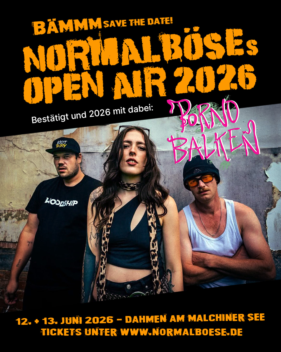 Wir freuen uns wie verballerte Teenager, denn beim zweiten NORMALBÖSEs OPEN AIR 2026 sind mit dabei: